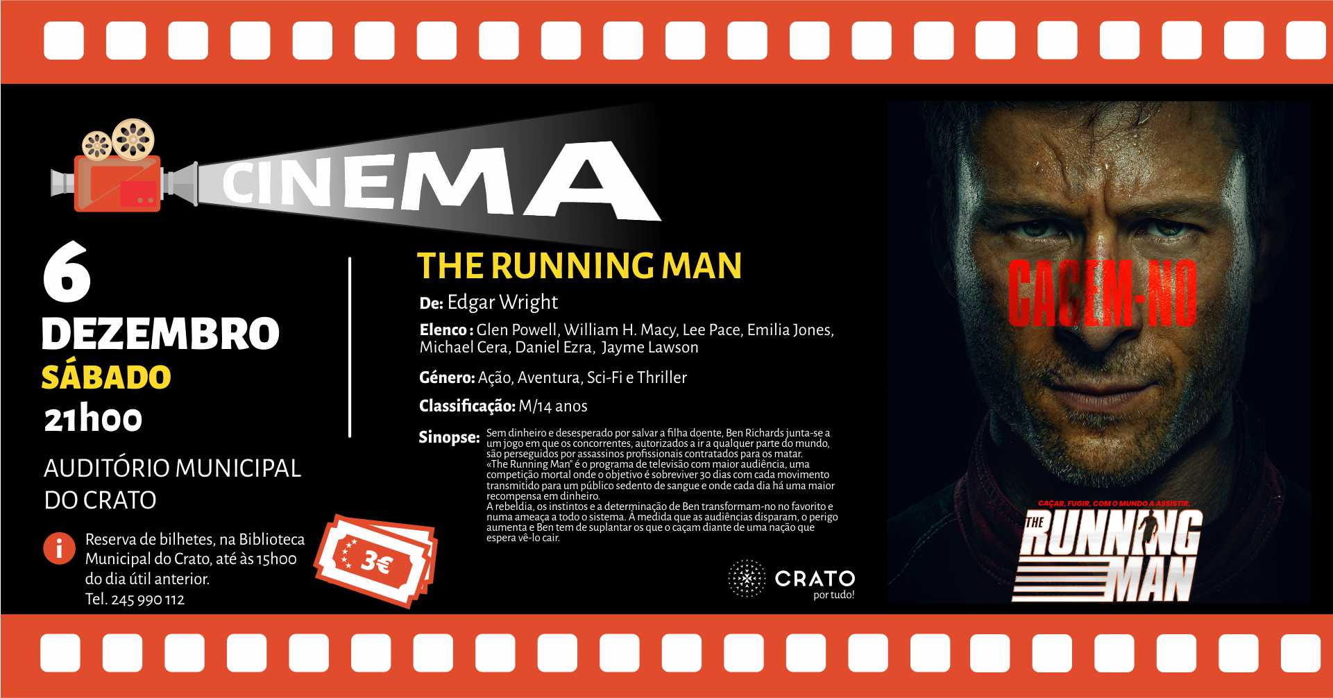 Nota: Reserva de bilhetes, na Biblioteca Municipal do Crato, até às 15h00 do dia útil anterior.| Tel. 245 990 112